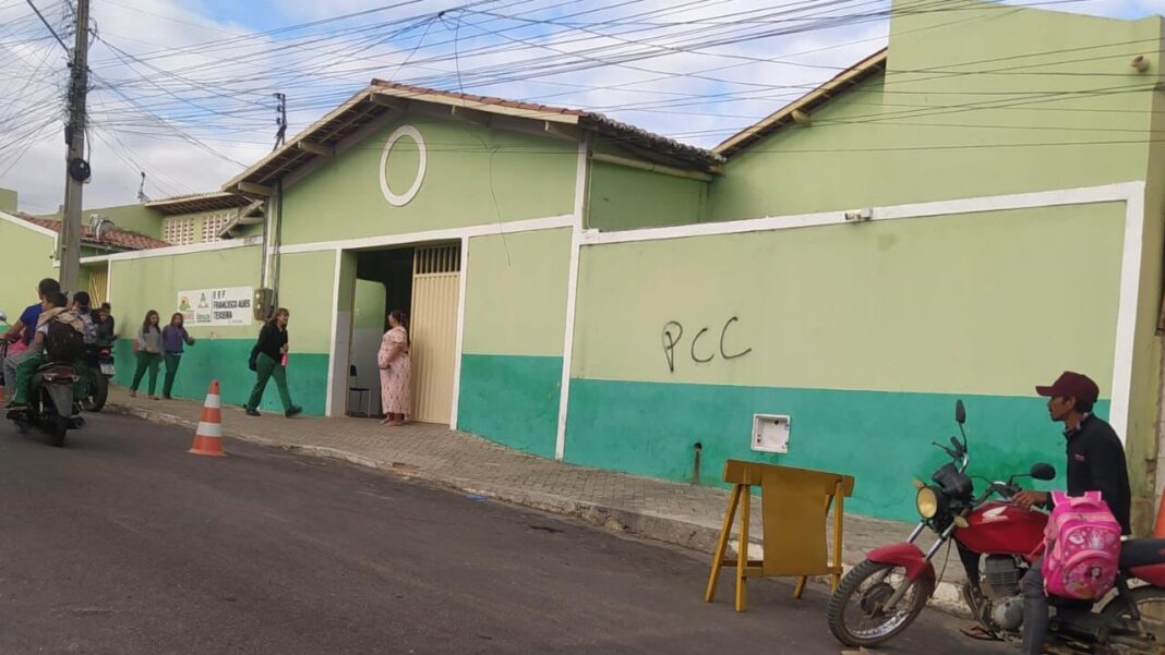 A escola Francisco Alves Teixeira, no município de Parambu, amanheceu, nesta quarta-feira (1º), pichada com sigla da facção criminosa paulista Primeiro Comando da Capital (PCC). A pichação foi feita no muro da unidade de ensino.