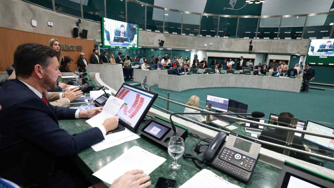Assembleia Legislativa do Ceará aprovou, nesta quinta-feira (10), um manifesto contra a carta de Donald Trump, presidente dos Estados Unidos, ao presidente Lula (PT), impondo uma taxa de 50% sobre a importação de produtos brasileiros. O texto foi redigido pelo presidente da Casa, Romeu Aldigueri (PT), e teve coautoria de Salmito (PSB). Mais de 30 deputados e deputadas assinaram o “Manifesto em Defesa do Brasil”, da Alece, oito parlamentares votaram contrário ao manifesto, são eles: Antonio Henrique (PDT), Alcides Fernandes (PL), Carmelo Neto (PL), Cláudio Pinho (PDT), Lucinildo Frota (PDT), Queiroz Filho (PDT), Pedro Matos (Avante) e Sargento Reginauro (União).