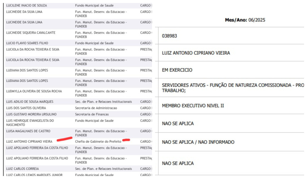 O irmão do Secretário-chefe da Casa Civil, Chagas Viera, vem acumulando dois cargos públicos ao mesmo tempo. Uma fonte contou a Ceará Antenado e enviou documentos que mostram que Luiz Antônio Cipriano Viera vem trabalhando como chefe de Gabinete da Prefeitura de Paracuru, assim como também exerce função de Membro Executivo Nível II na Assembleia Legislativa do Ceará.