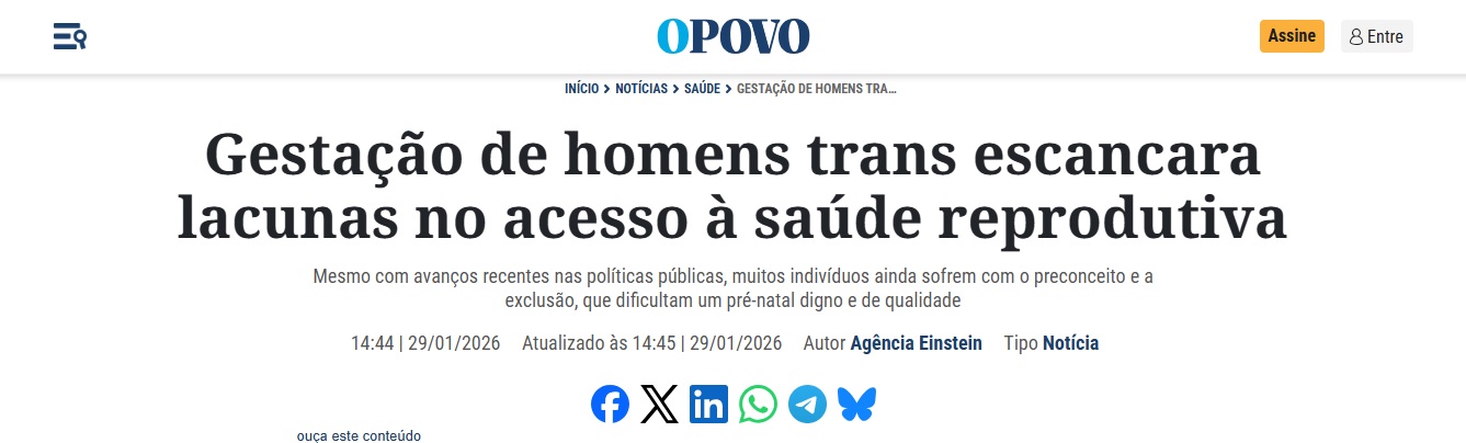 Um dos maiores jornais do estado (Jornal O Povo), publicou no seu site e suas redes sociais no final dessa semana uma reportagem que gerou polémica com o título “Gestação de homens trans escancara lacunas no acesso à saúde reprodutiva”.