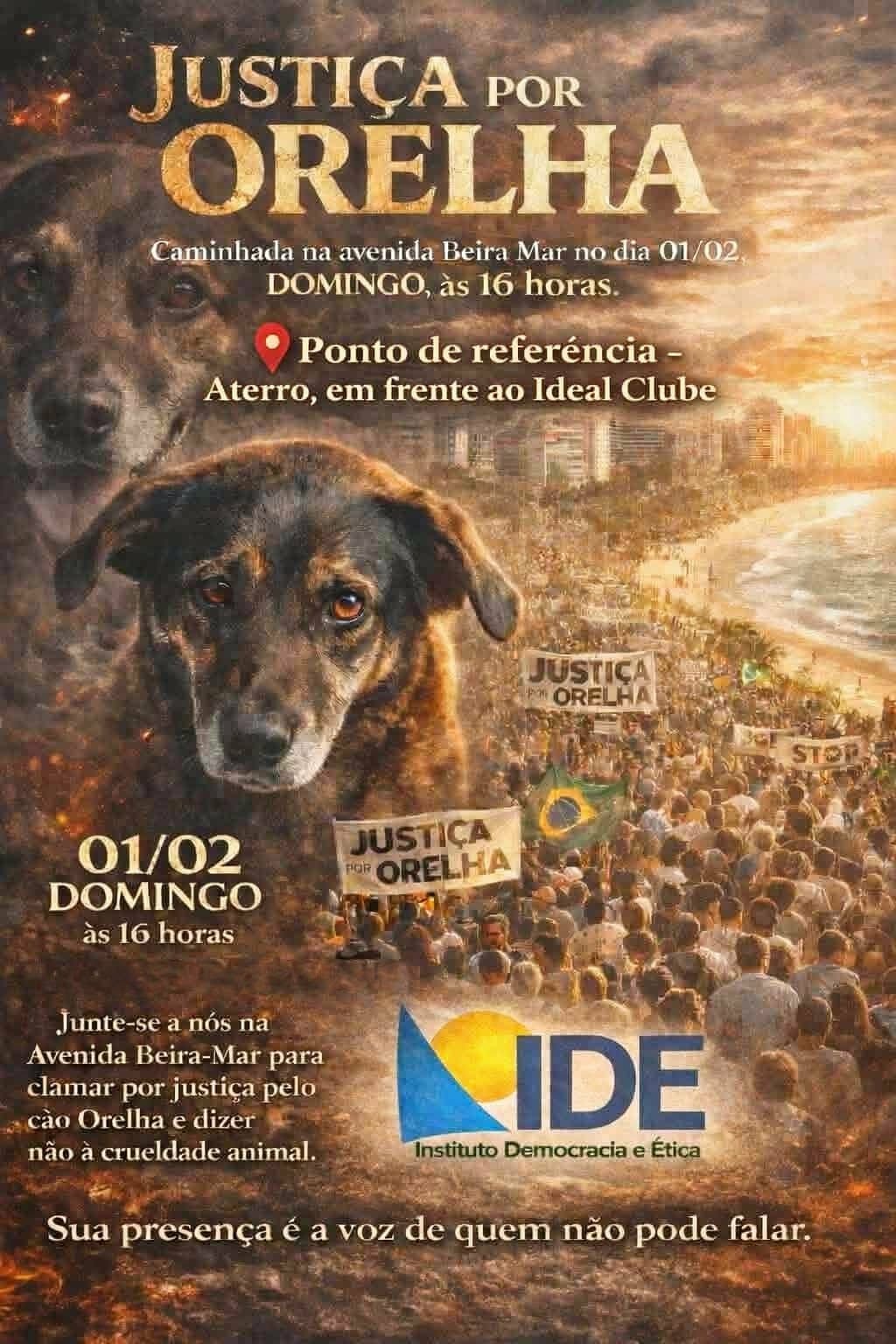 “Em memória do cão Orelha e em defesa de todos os animais que não têm voz. Essa caminhada é sobre empatia, responsabilidade e compromisso com a vida. Participe. Leve sua família e seu Pet”, afirma nota