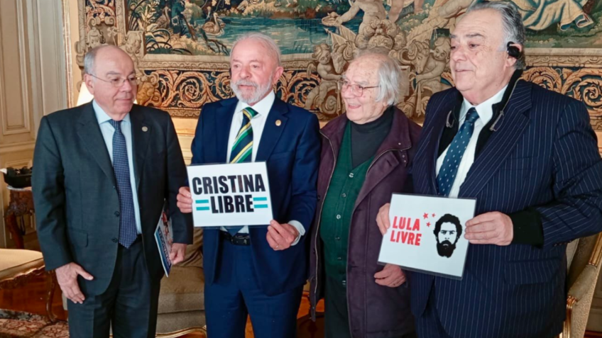 “Além de prestar minha solidariedade a ela por tudo que tem vivido, desejei toda a força para seguir lutando com a mesma firmeza que tem sido a marca de sua trajetória na vida e na política. Pude sentir nas ruas o apoio popular que tem recebido e sei bem o quanto é importante esse reconhecimento nos momentos mais difíceis”, escreveu Lula em sua página no X. Em foto publicada no dia do encontro, Lula segura um cartaz que diz “Cristina Libre” (“Cristina livre”, em português) ao lado do escritor e pintor argentino Adolfo Pérez Esquivel.