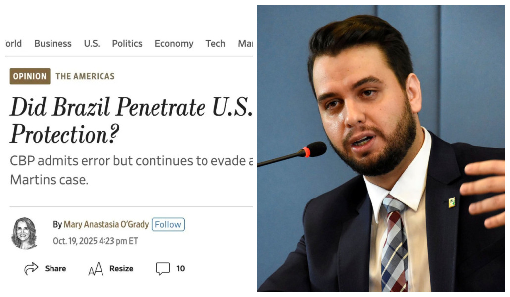 Um artigo da colunista Mary Anastasia O’Grady publicado neste domingo (19) pelo jornal The Wall Street Journal levanta abertamente a hipótese de que o sistema da Alfândega e Proteção de Fronteiras dos Estados Unidos (Customs and Border Protection ou CBP, na sigla em inglês) pode ter sido alvo de uma invasão de autoridades brasileiras. A suspeita está relacionada ao caso do ex-assessor da Presidência Filipe Martins, preso no Brasil com base em documentos considerados falsos pelo próprio CBP. Segundo o jornal, “o caso tem todas as características de uma possível infiltração estrangeira dentro do CBP”.