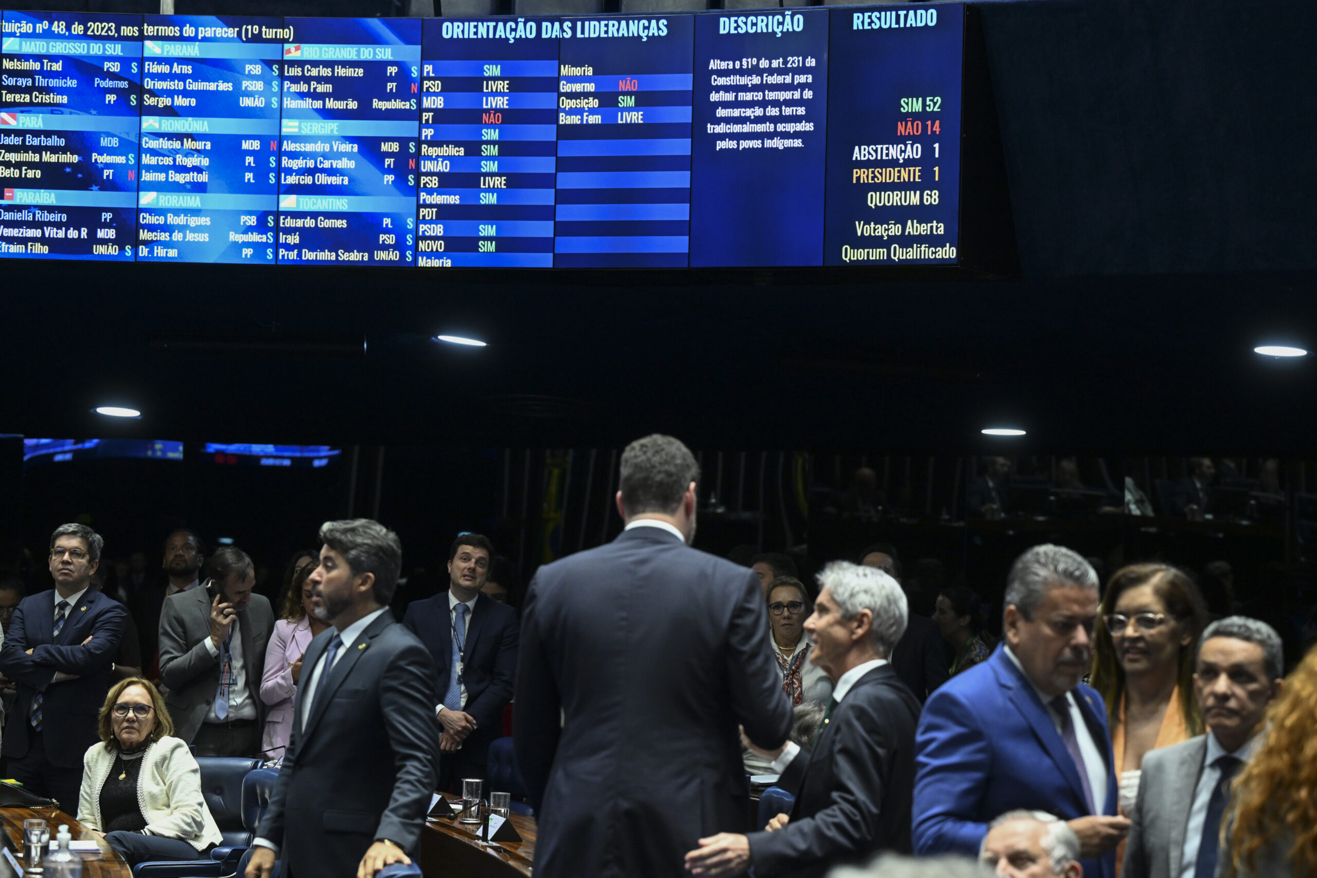Alguns senadores defenderam o direito histórico dos povos indígenas, como Zenaide Maia (PSD-RN), que afirmou que “os índios já estavam aqui quando a gente chegou”. Outros, como Weverton (PDT-MA), argumentaram que o marco temporal pode permitir o desenvolvimento econômico e políticas públicas mais eficazes dentro das áreas indígenas.