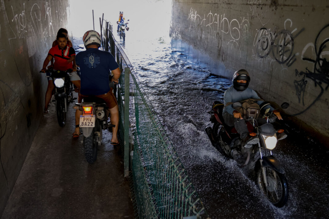 Com o acúmulo na parte mais baixa da passagem — agravado por desníveis no piso formados ao longo dos anos —, os motoristas que seguem ou vêm da rua Presidente Vargas enfrentam receio e dificuldades para atravessar o túnel, correndo o risco de ter água entrando no veículo.