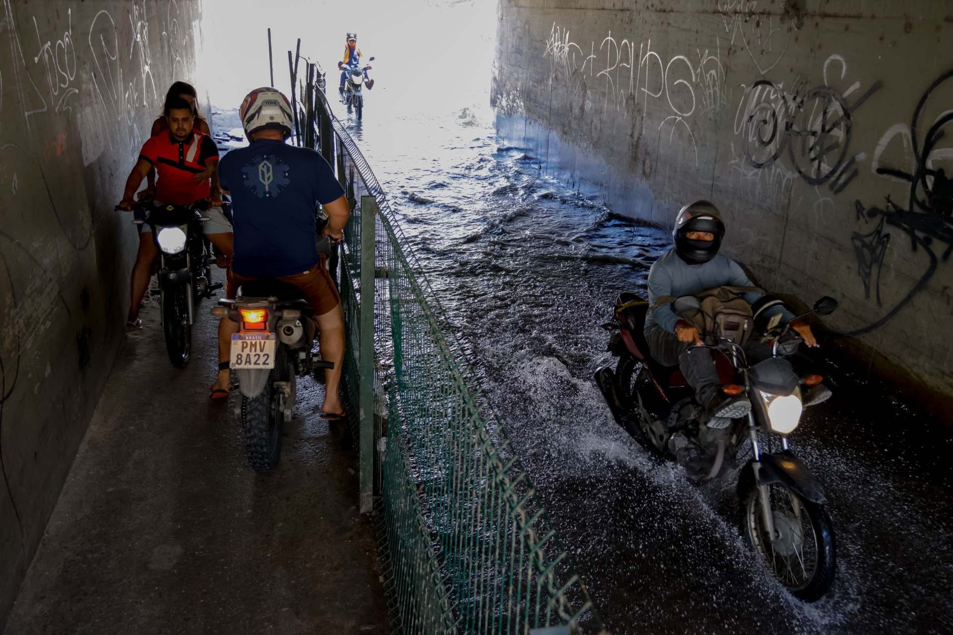 Com medo de quedas, os motociclistas que se arriscam a passar pelo trecho precisam reduzir a velocidade. Muitos também passam com as pernas levantadas, evitando apoiar os pés nos pedais da moto para que roupas e sapatos não entrem em contato com a água escura.